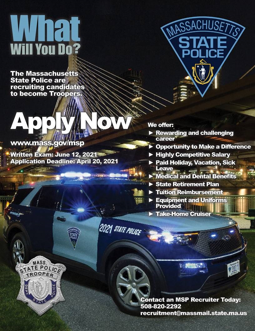 How to become a mass state trooper. A state police cadet is a person who has been. Like most law enforcement officers, state troopers spend a lot of time driving. Possess a valid massachusetts driver's license upon appointment to the massachusetts state police academy;